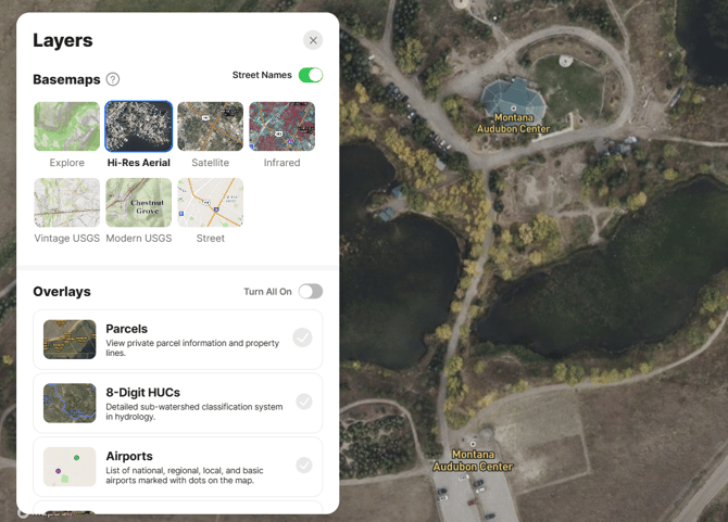 Note: The Hi-Res Aerial basemap is only available on Land id Premium, Pro, and Pro Unlimited Plans.